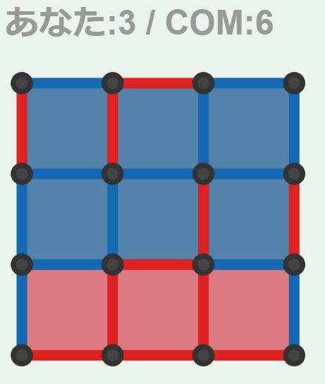全ての線が引き終わった時に陣地の数が多いほうが勝ちとなります。
