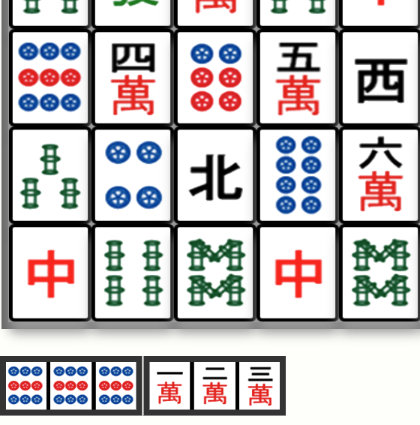 消した牌の組み合わせが、同じ牌3個(コウツ)か数字が連続する牌3個(シュンツ)の場合、画面下に面子が表示されます。
